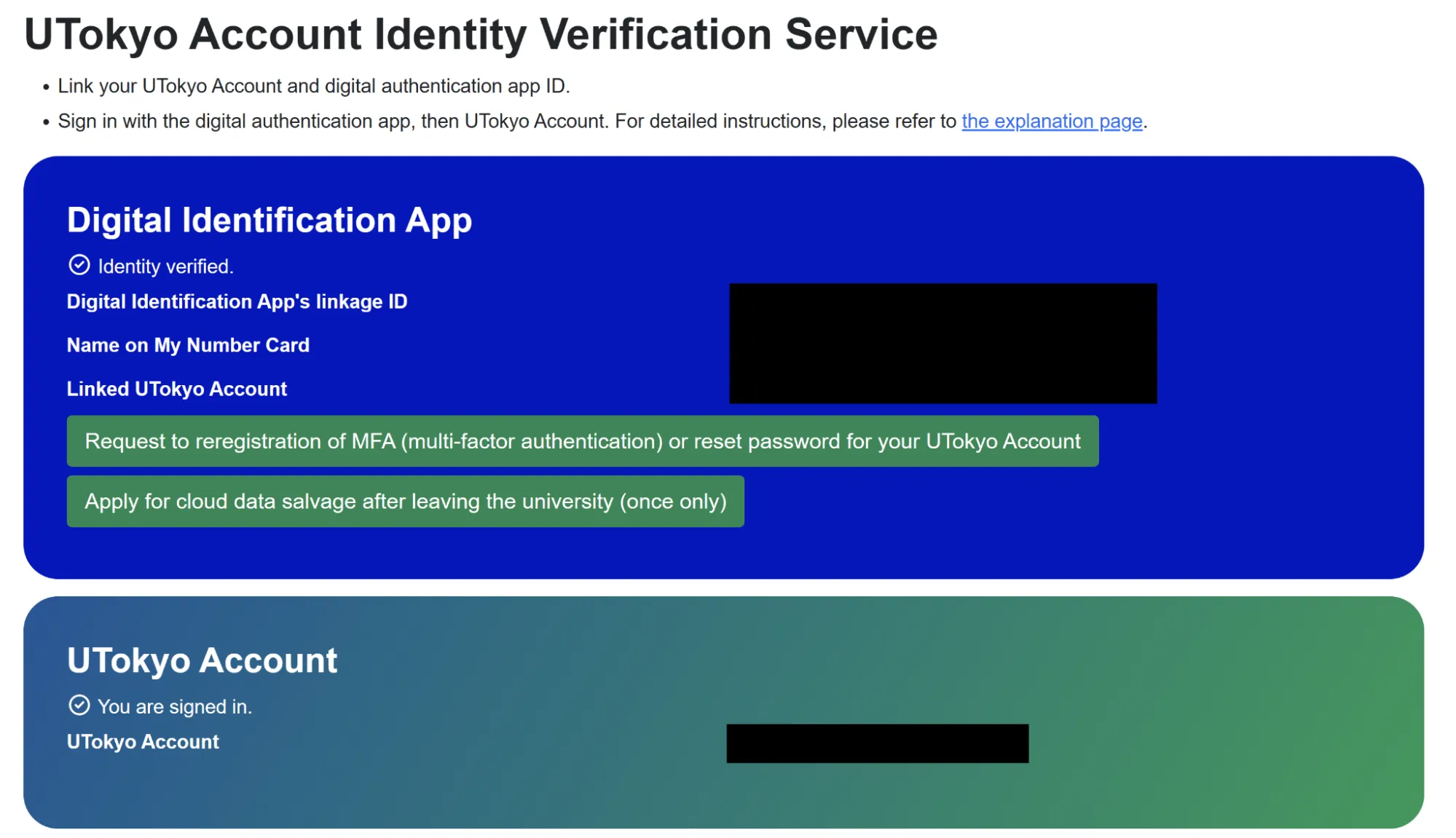 • You have completed the pre-link process for the UTokyo Account Identity Verification Service.