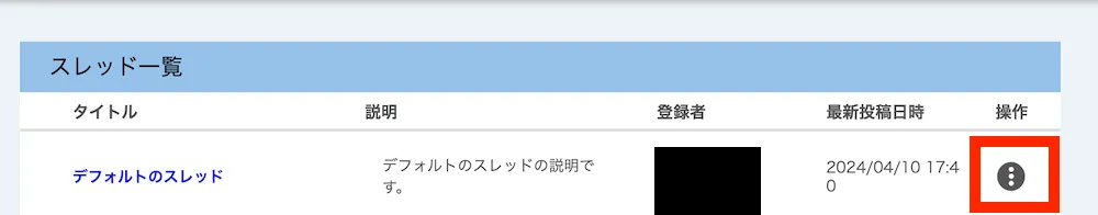 新たにテーマを登録すると,タイトルが「デフォルトのスレッド」であるスレッドが自動的に生成されます.スレッドのタイトルや説明を適切に設定することで,スレッドの目的をわかりやすく示すことが可能になるので,必要に応じてスレッドを編集してください.
